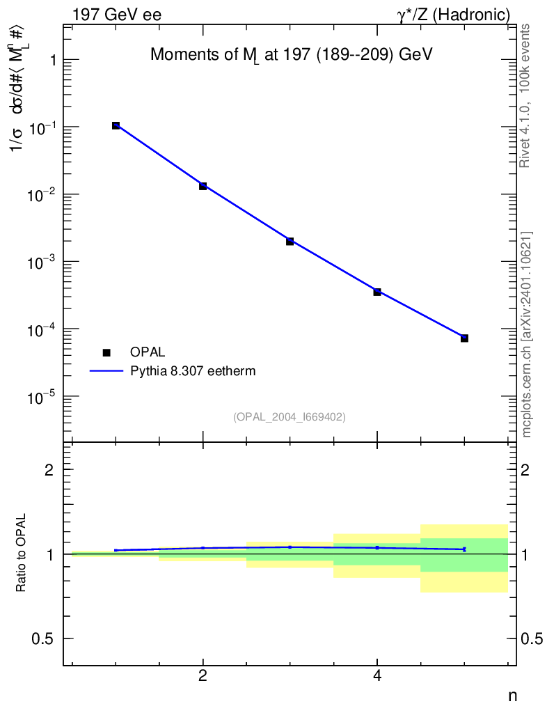 Lines: data, pythia8 8.307 eetherm |