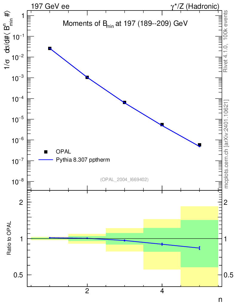 Lines: data, pythia8 8.307 pptherm |