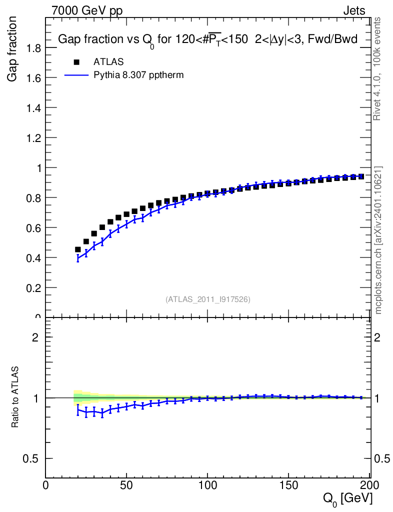 Lines: data, pythia8 8.307 pptherm |