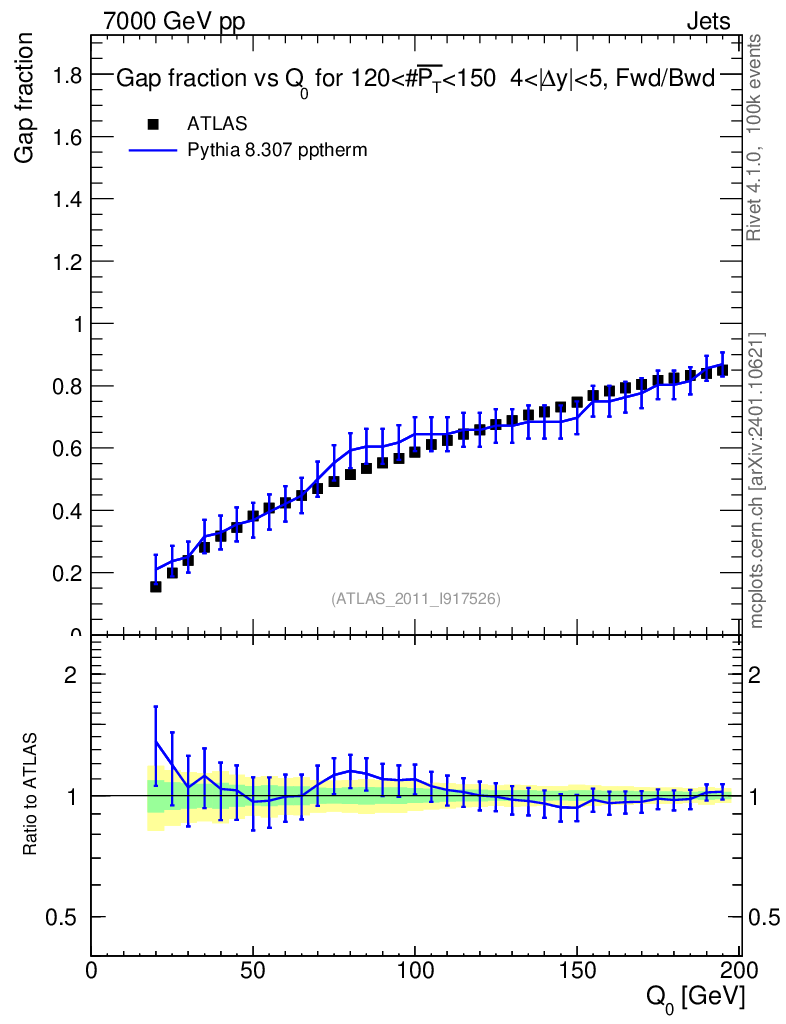 Lines: data, pythia8 8.307 pptherm |
