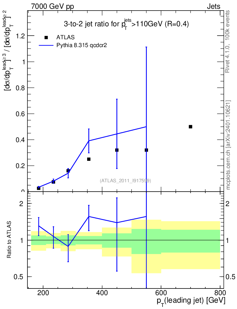 Lines: data, pythia8 8.315 qcdcr2 |