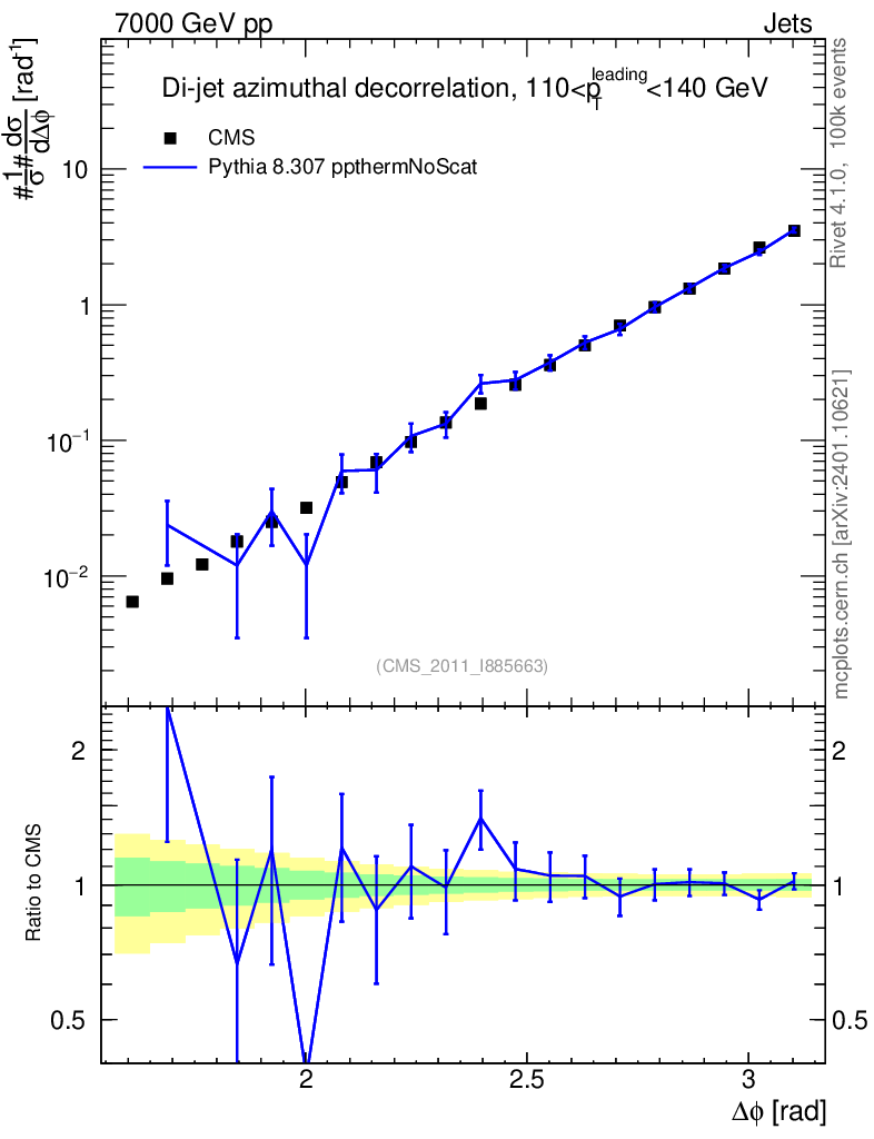 Lines: data, pythia8 8.307 ppthermNoScat |
