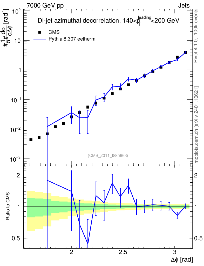 Lines: data, pythia8 8.307 eetherm | compare with other tunes