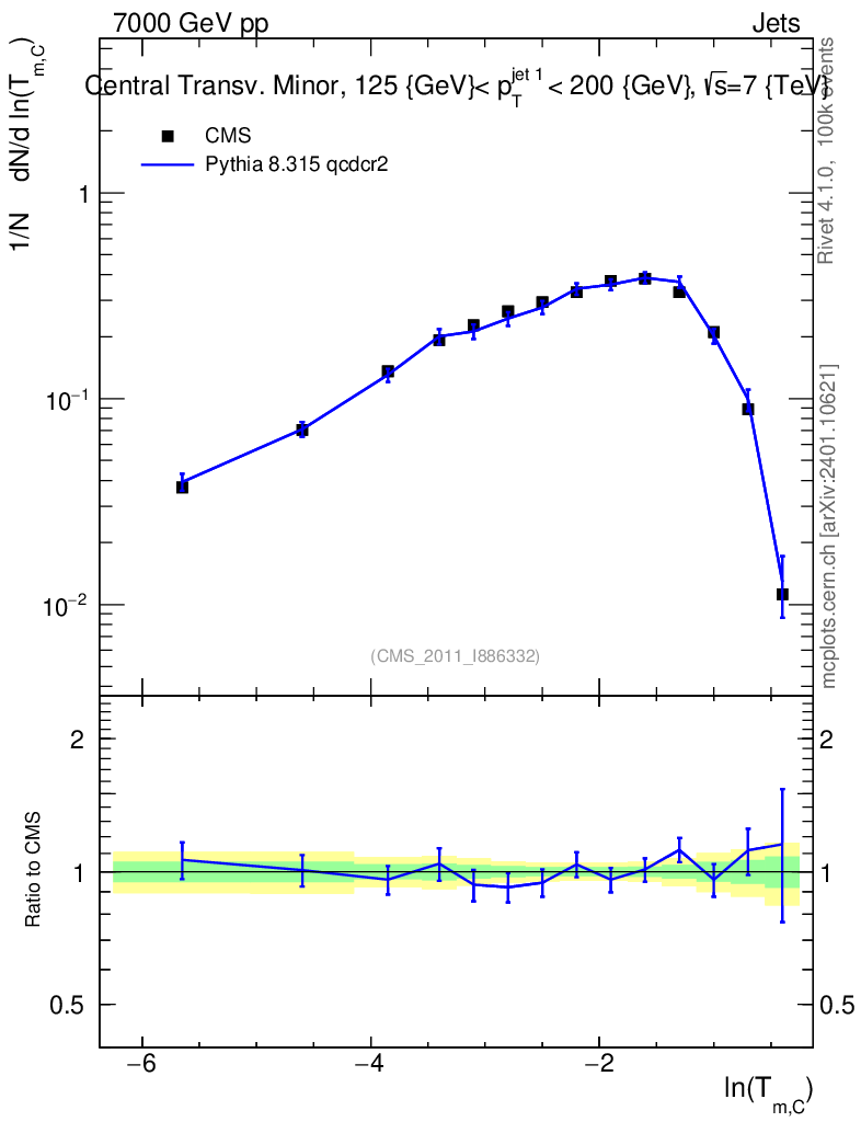 Lines: data, pythia8 8.315 qcdcr2 |