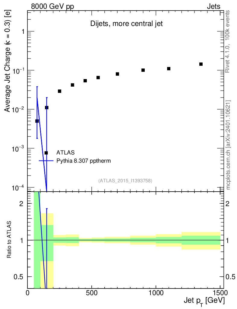 Lines: data, pythia8 8.307 pptherm |