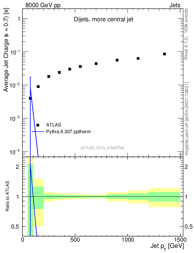 Lines: data, pythia8 8.307 pptherm |
