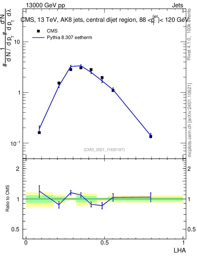 Lines: data, pythia8 8.307 eetherm |