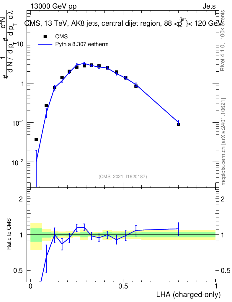 Lines: data, pythia8 8.307 eetherm |