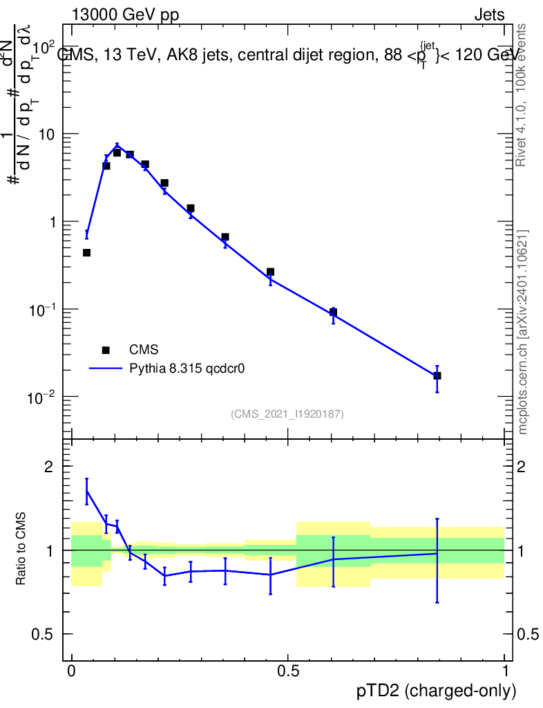 Lines: data, pythia8 8.315 qcdcr0 |