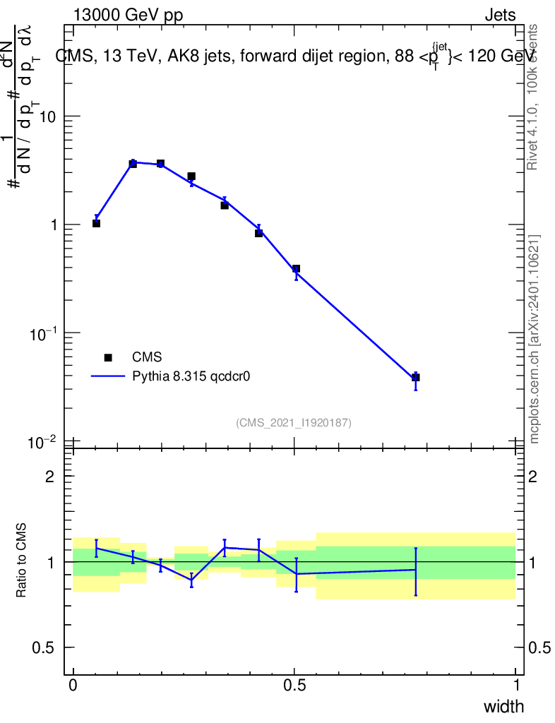 Lines: data, pythia8 8.315 qcdcr0 |