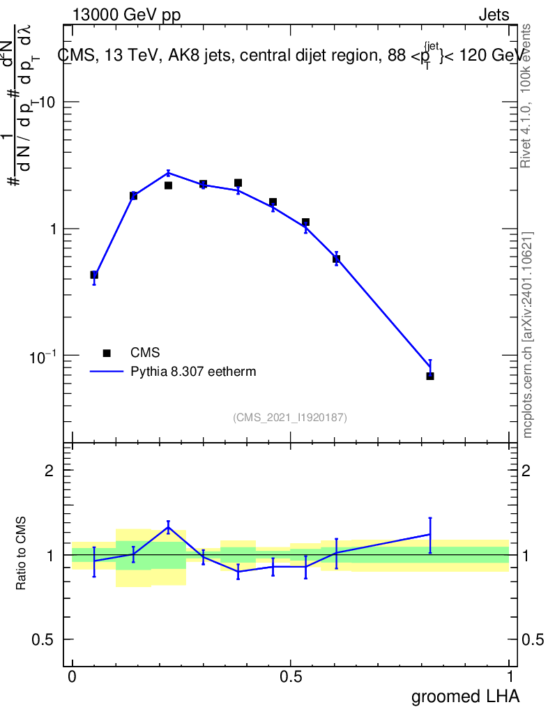 Lines: data, pythia8 8.307 eetherm |