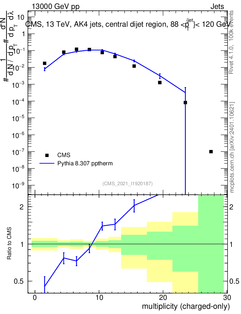Lines: data, pythia8 8.307 pptherm |