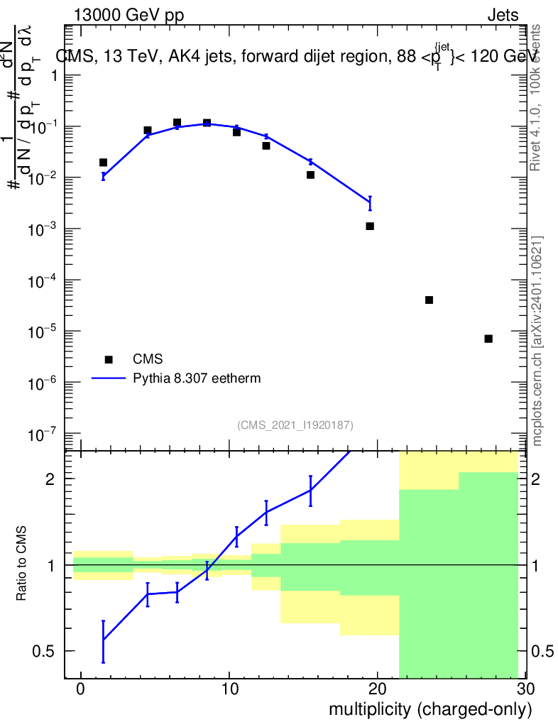 Lines: data, pythia8 8.307 eetherm |