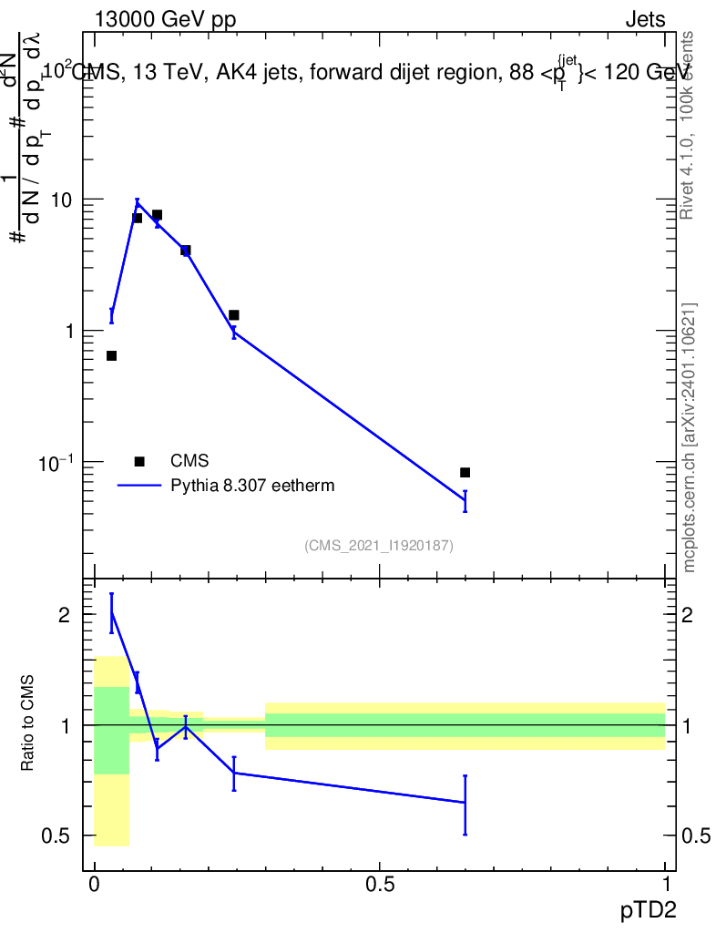 Lines: data, pythia8 8.307 eetherm |