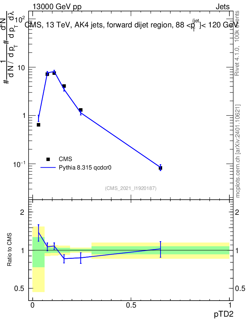 Lines: data, pythia8 8.315 qcdcr0 |