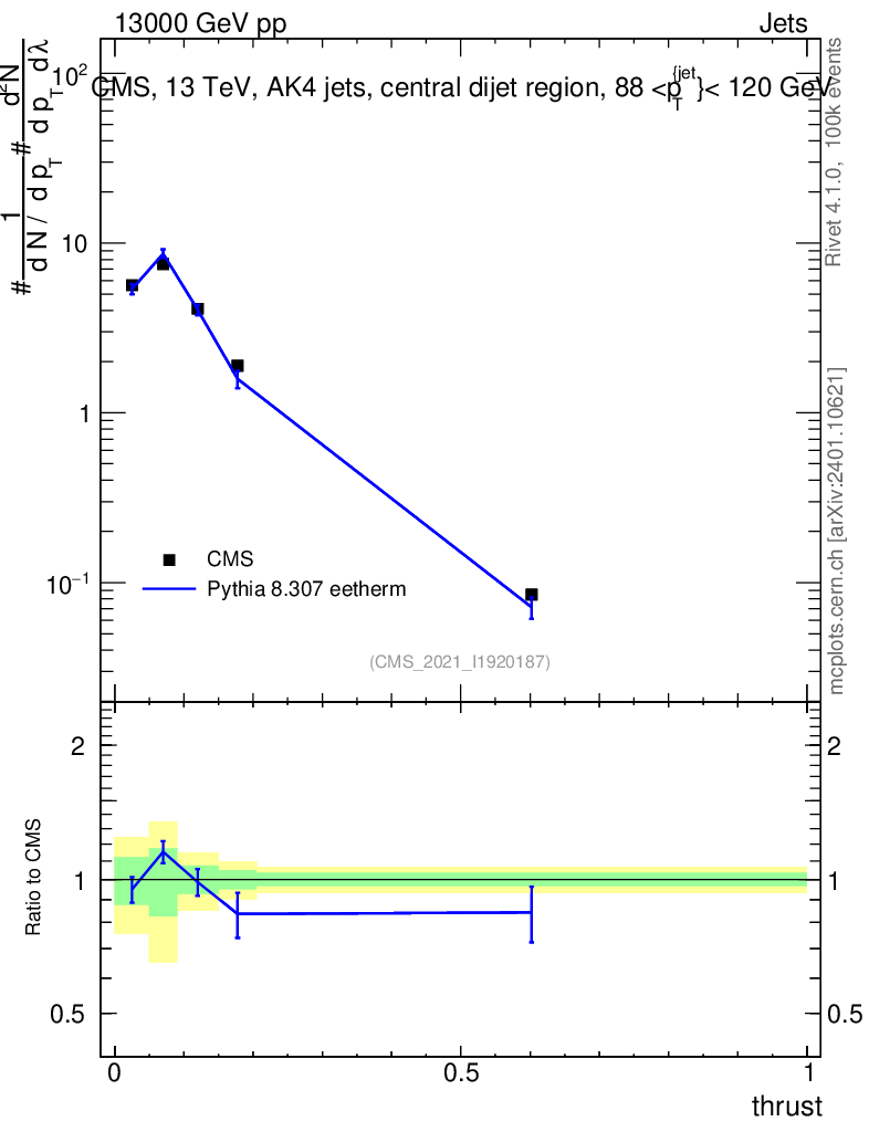 Lines: data, pythia8 8.307 eetherm |