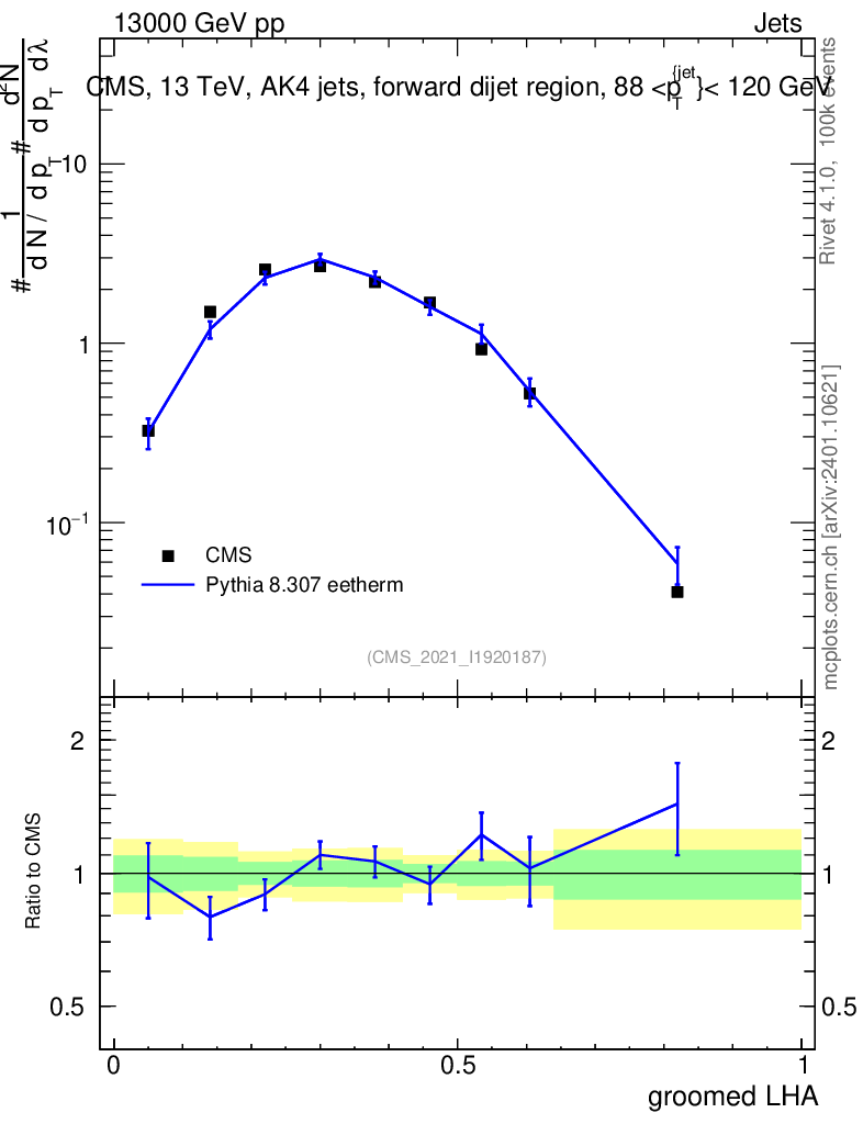 Lines: data, pythia8 8.307 eetherm |