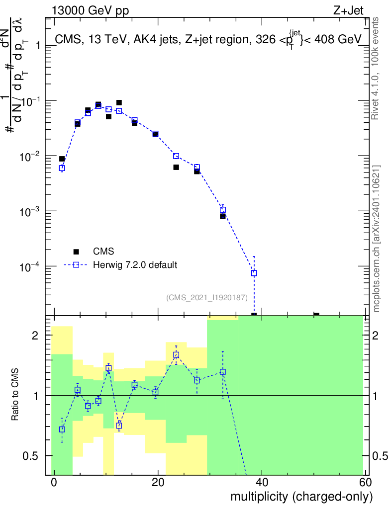 Lines: data, herwig7 7.2.0 default |