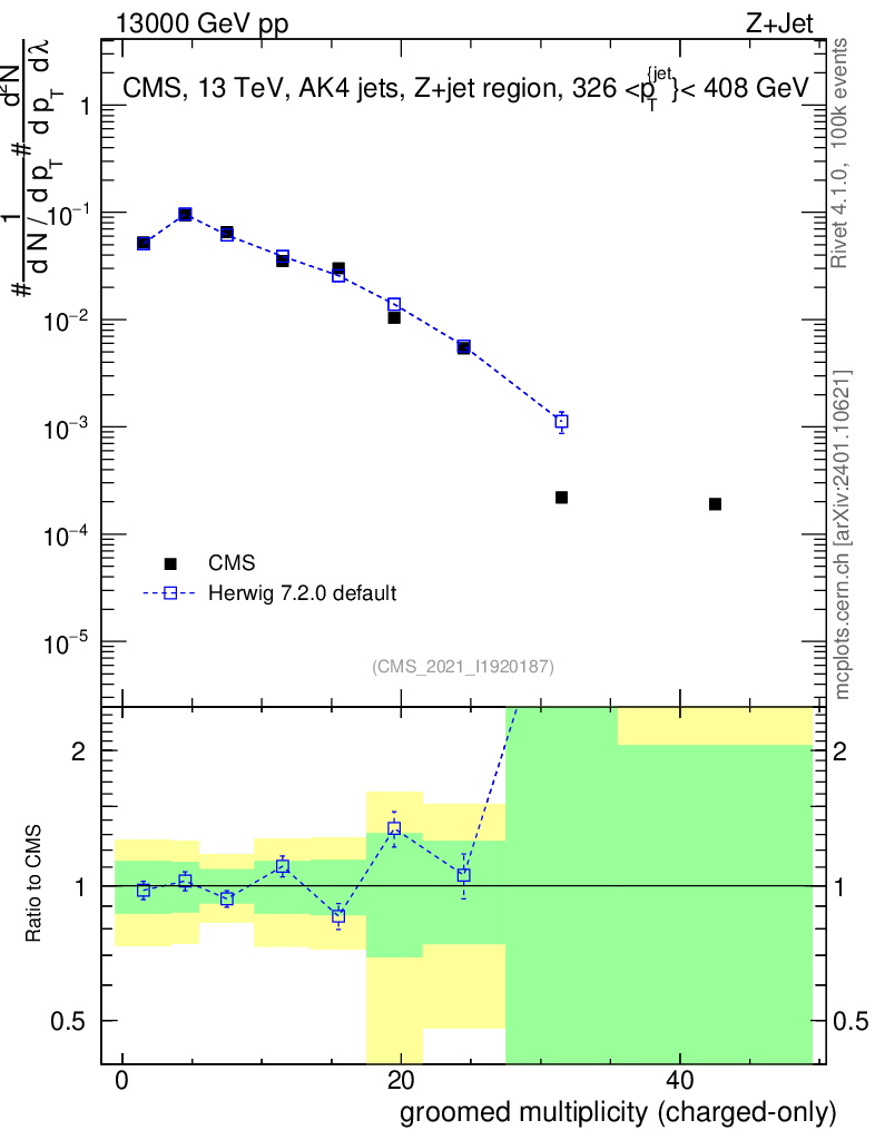 Lines: data, herwig7 7.2.0 default |