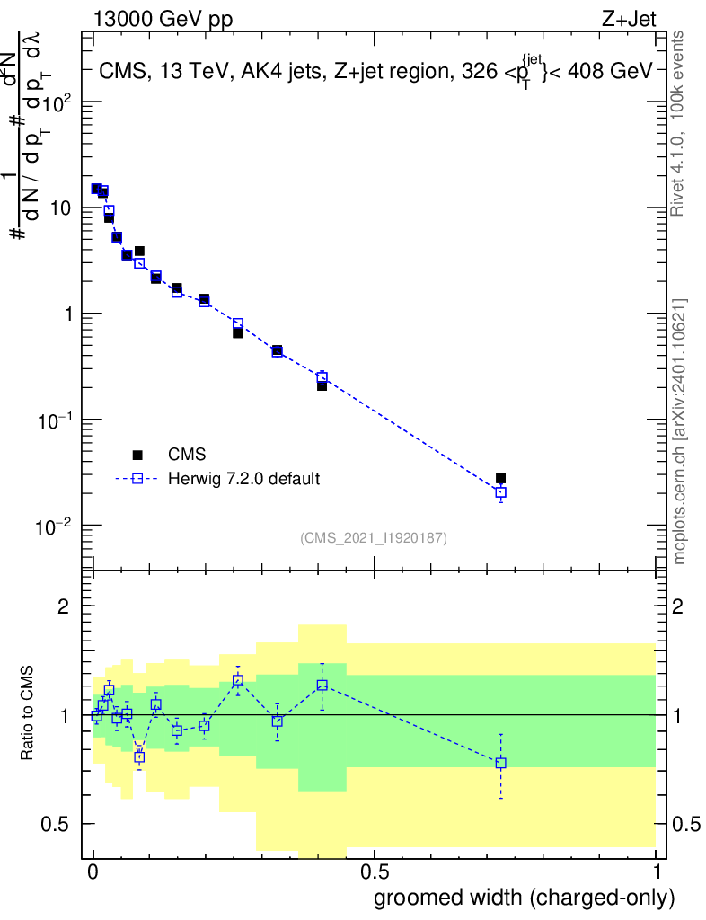 Lines: data, herwig7 7.2.0 default |
