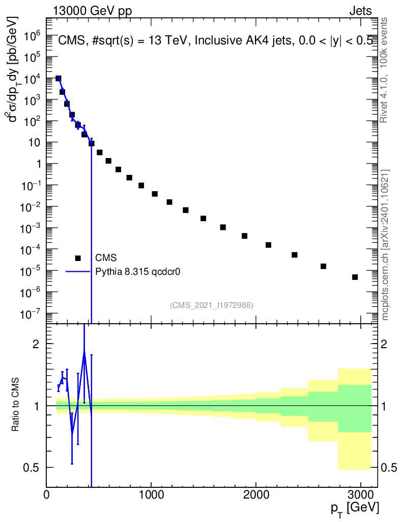 Lines: data, pythia8 8.315 qcdcr0 |