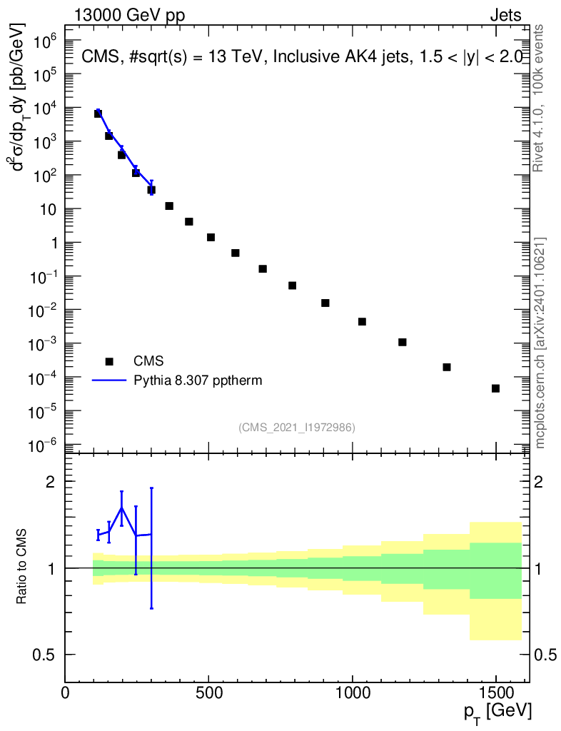 Lines: data, pythia8 8.307 pptherm |