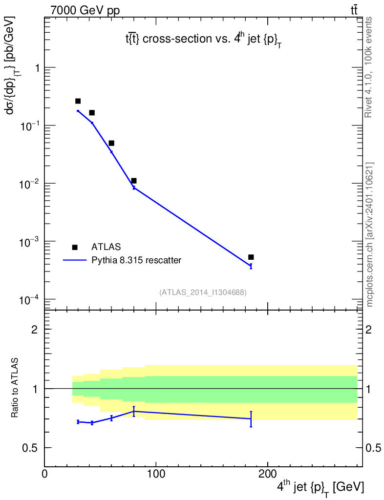 Lines: data, pythia8 8.315 rescatter |