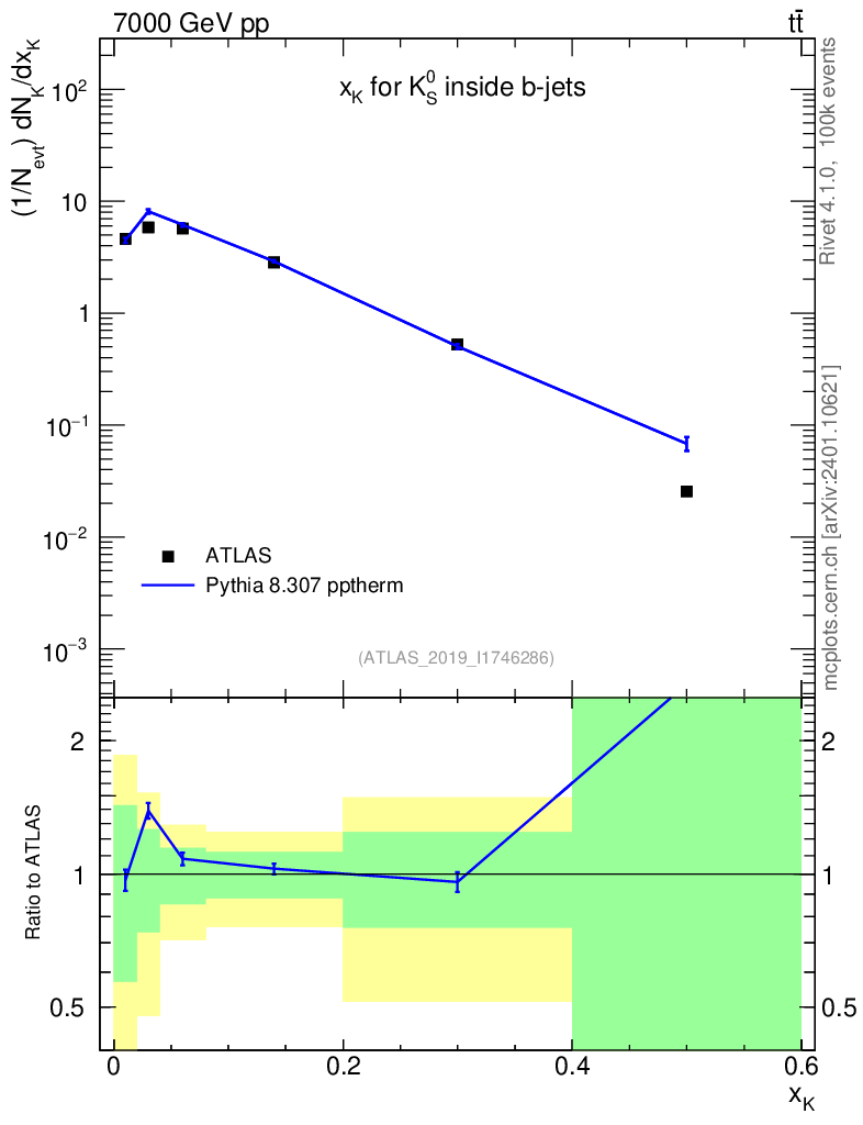 Lines: data, pythia8 8.307 pptherm |