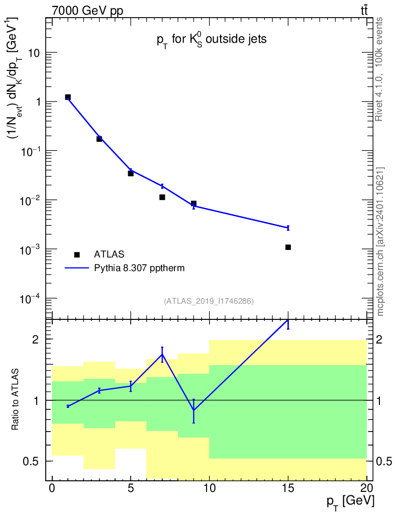 Lines: data, pythia8 8.307 pptherm |