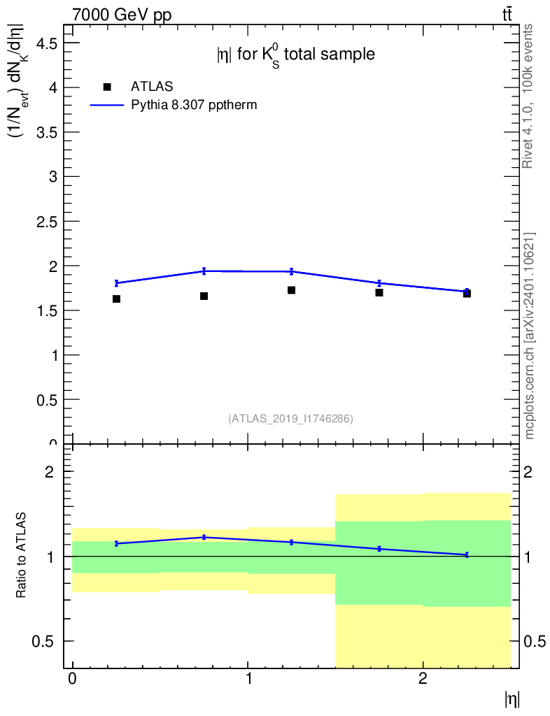 Lines: data, pythia8 8.307 pptherm |