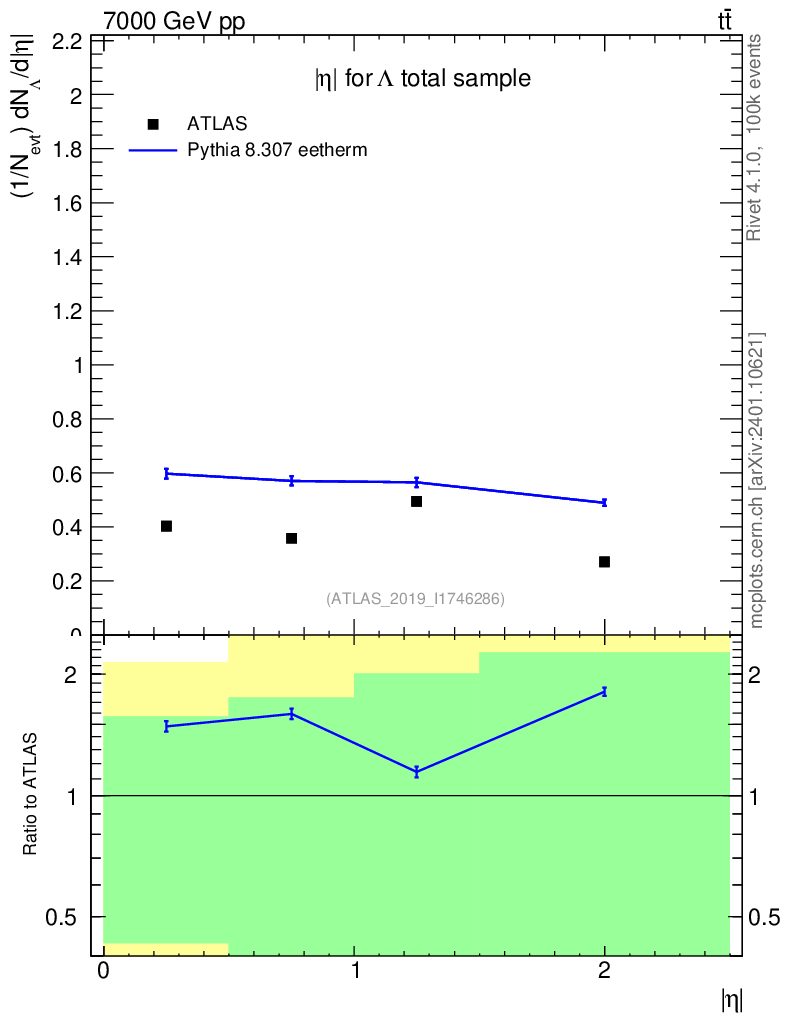 Lines: data, pythia8 8.307 eetherm |