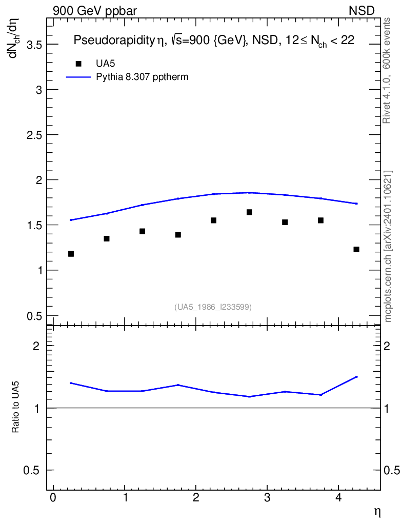 Lines: data, pythia8 8.307 pptherm |