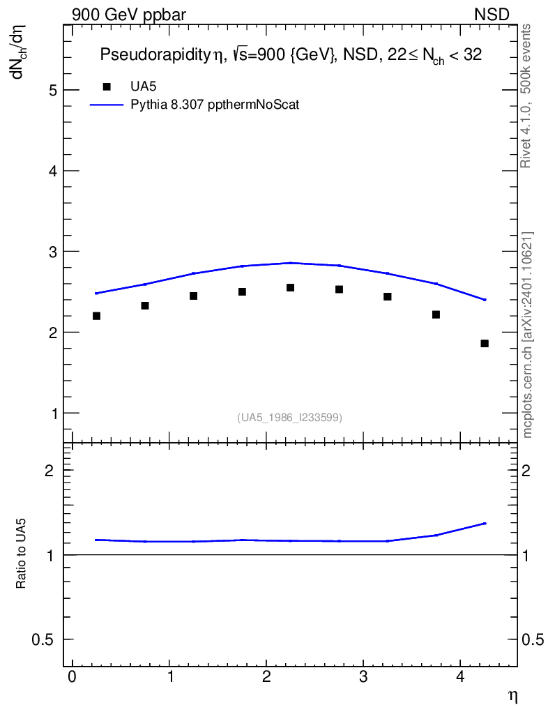 Lines: data, pythia8 8.307 ppthermNoScat |