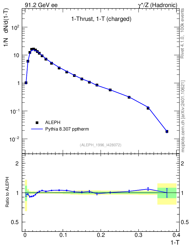 Lines: data, pythia8 8.307 pptherm |