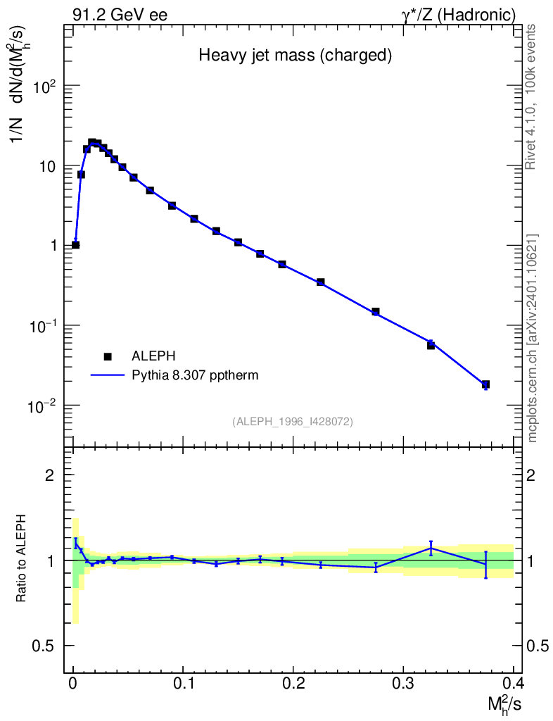 Lines: data, pythia8 8.307 pptherm |