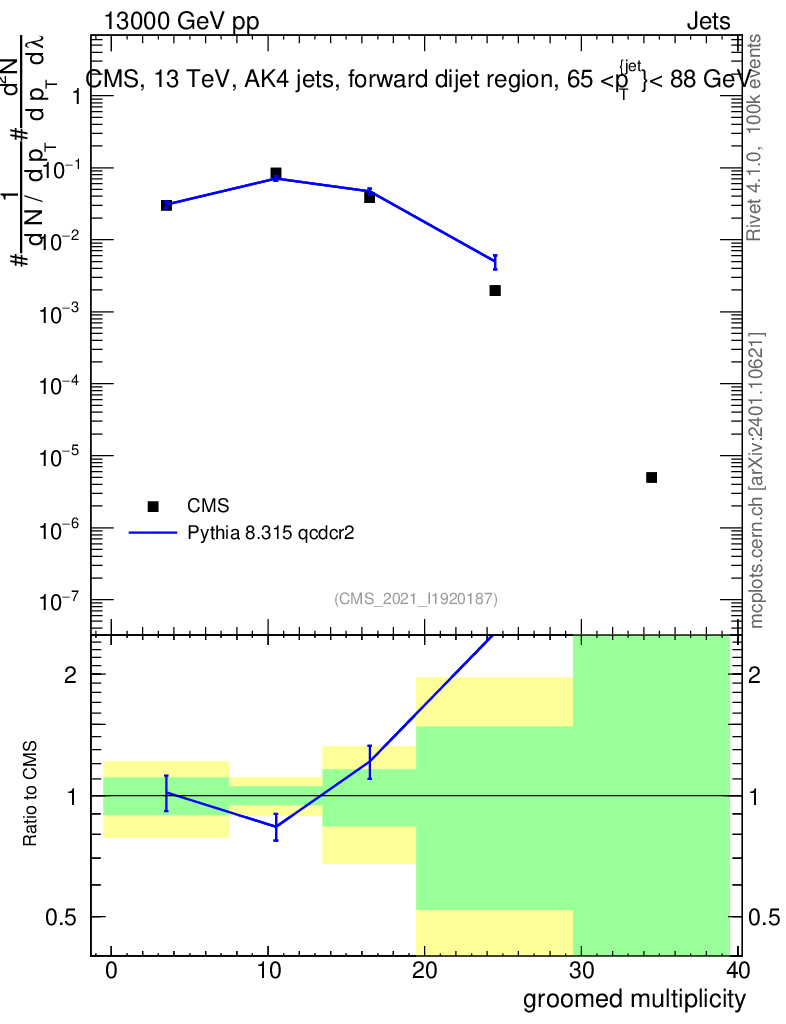 Lines: data, pythia8 8.315 qcdcr2 |