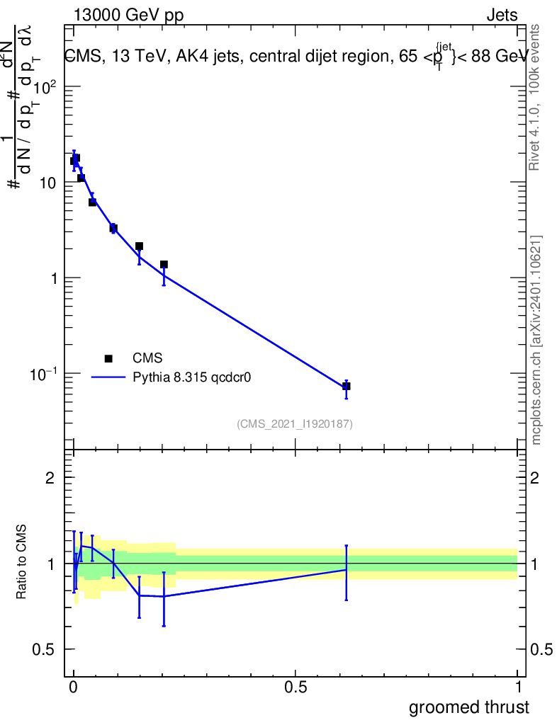 Lines: data, pythia8 8.315 qcdcr0 |