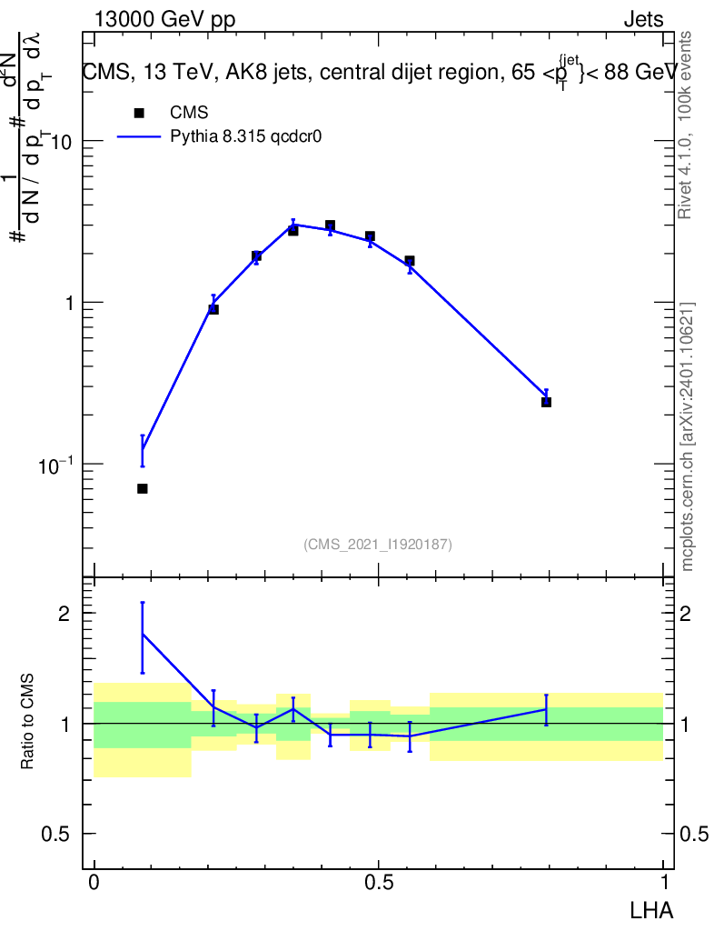 Lines: data, pythia8 8.315 qcdcr0 |