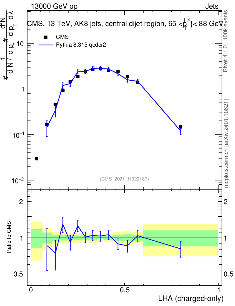 Lines: data, pythia8 8.315 qcdcr2 |