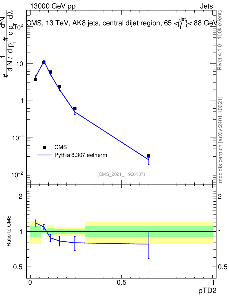 Lines: data, pythia8 8.307 eetherm |