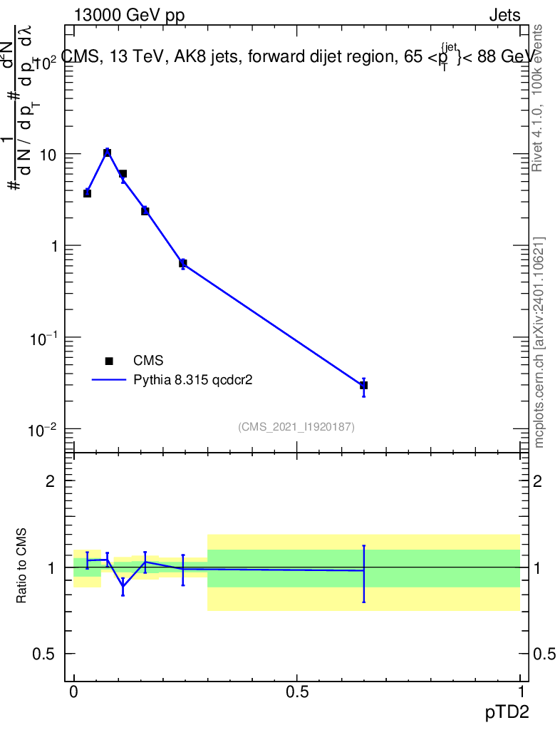 Lines: data, pythia8 8.315 qcdcr2 |