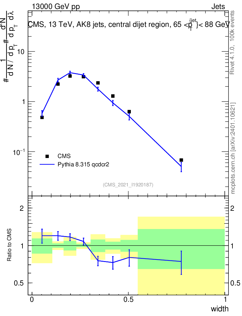 Lines: data, pythia8 8.315 qcdcr2 |