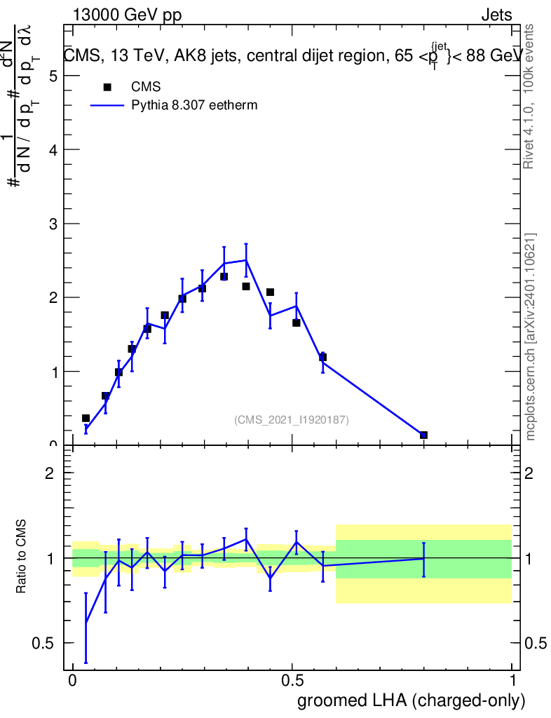 Lines: data, pythia8 8.307 eetherm |