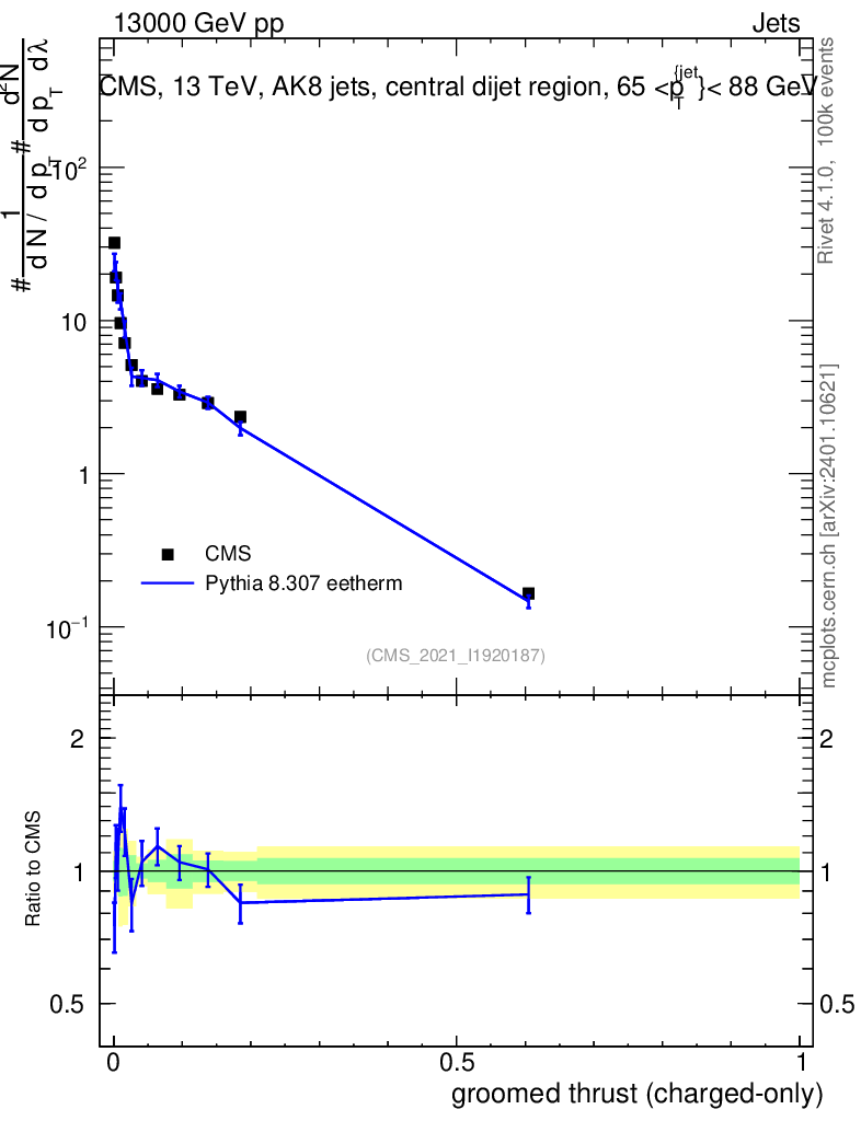 Lines: data, pythia8 8.307 eetherm |