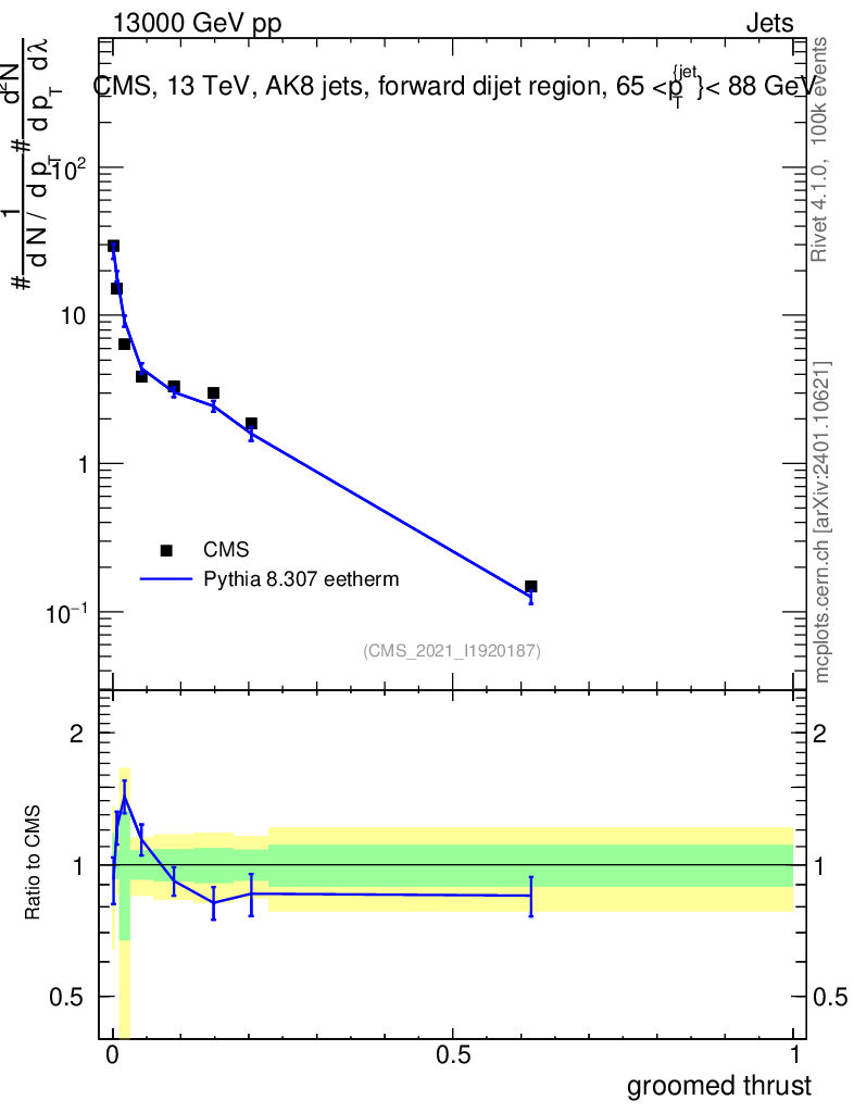 Lines: data, pythia8 8.307 eetherm |