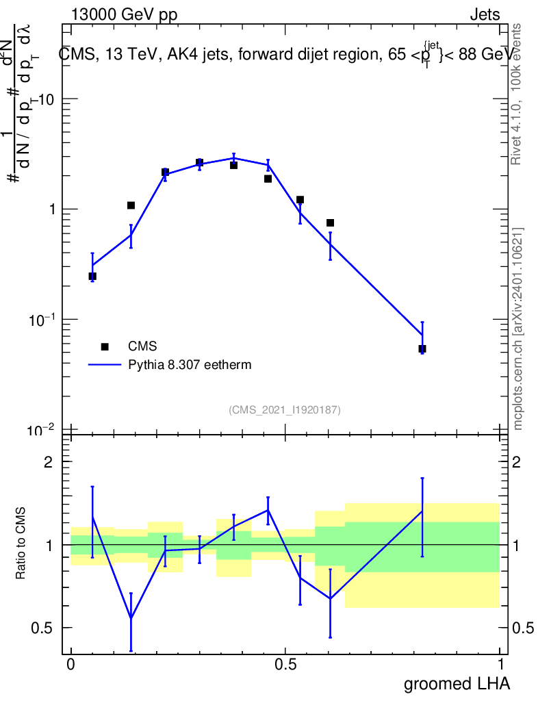 Lines: data, pythia8 8.307 eetherm |