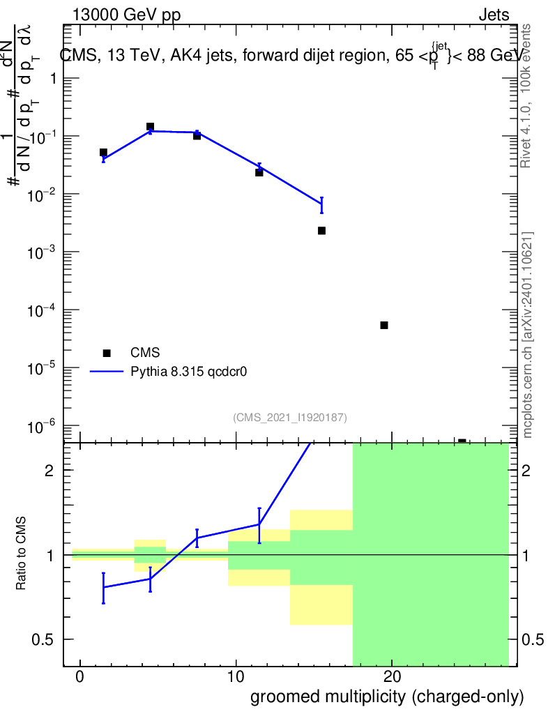 Lines: data, pythia8 8.315 qcdcr0 |