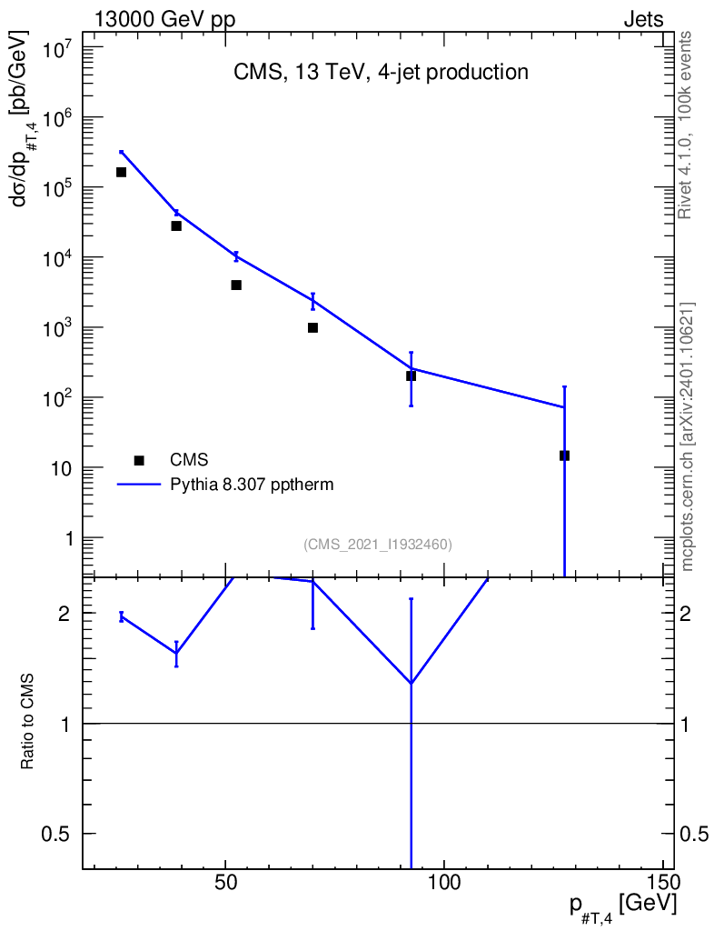 Lines: data, pythia8 8.307 pptherm |