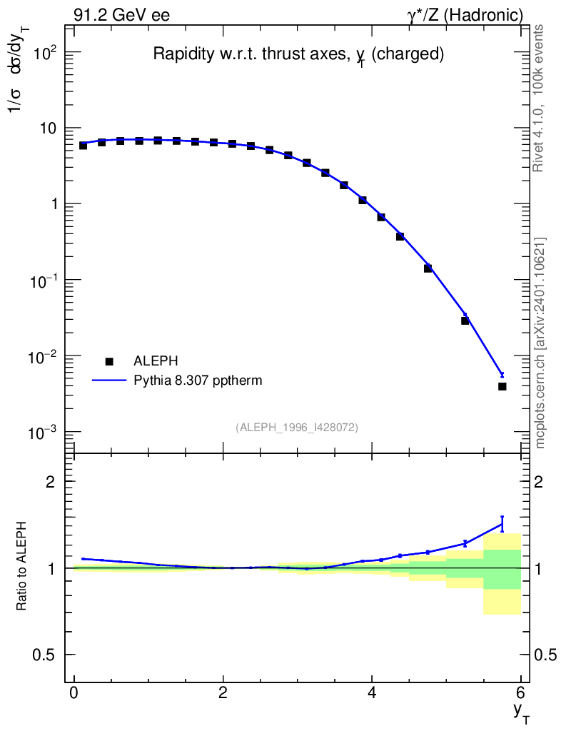 Lines: data, pythia8 8.307 pptherm |