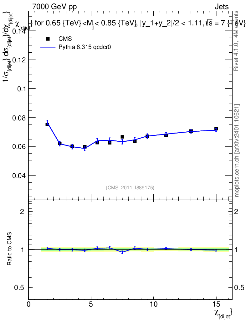 Lines: data, pythia8 8.315 qcdcr0 |